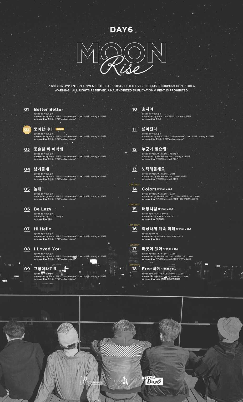 DAY6’in yaklaşmakta olan 2. albümü “Moonrise” için parça listesi yayınlandı.
