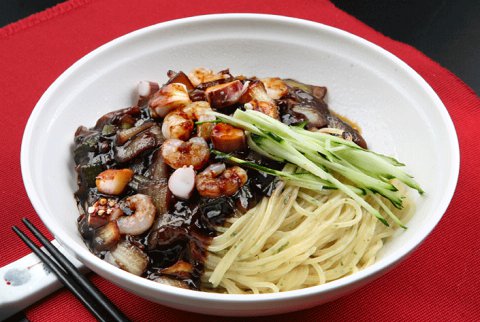 Ben gerçekten Çin yemeklerini seviyorum, bu yüzden benim için jjajangmyeon (siyah fasulyeli noodle)