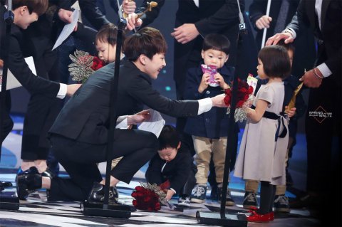 Ayrım yapmıyor ve herkese görgülü bir şekilde elini uzatıyor. (Birinin elini sıkarken kolunu tutmak Kore’de görgü kurallarından biri)