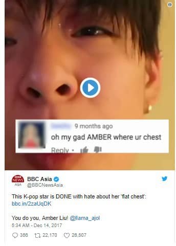 f(x)’den Amber, görünüşüyle ilgili olumsuz yorumları yanıtladığı viral video hakkında konuşmak için BBC ile röportaj yaptı.