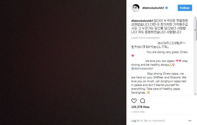 Bu mesaj Onew’in Temmuz ayından bu yana ilk sosyal medya paylaşımı olma özelliğini de taşıyor. SHINee lideri Onew özellikle Jonghyun’a en yakın olan isimlerden birisi. Onew cenaze töreni esnasında Jonghyun’u taşıyanlardan biri olurken aynı zamanda Key’in ağlayarak omzuna başını yaslaması bir çok kişinin kalbine dokundu.