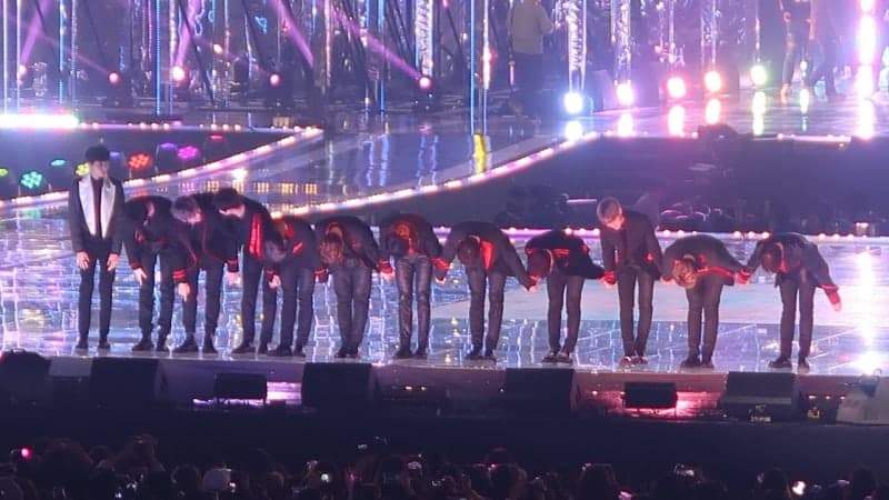 Wanna One üyelerinin hepsi birbirlerinin elini tutuyor ve eğiliyorlardı