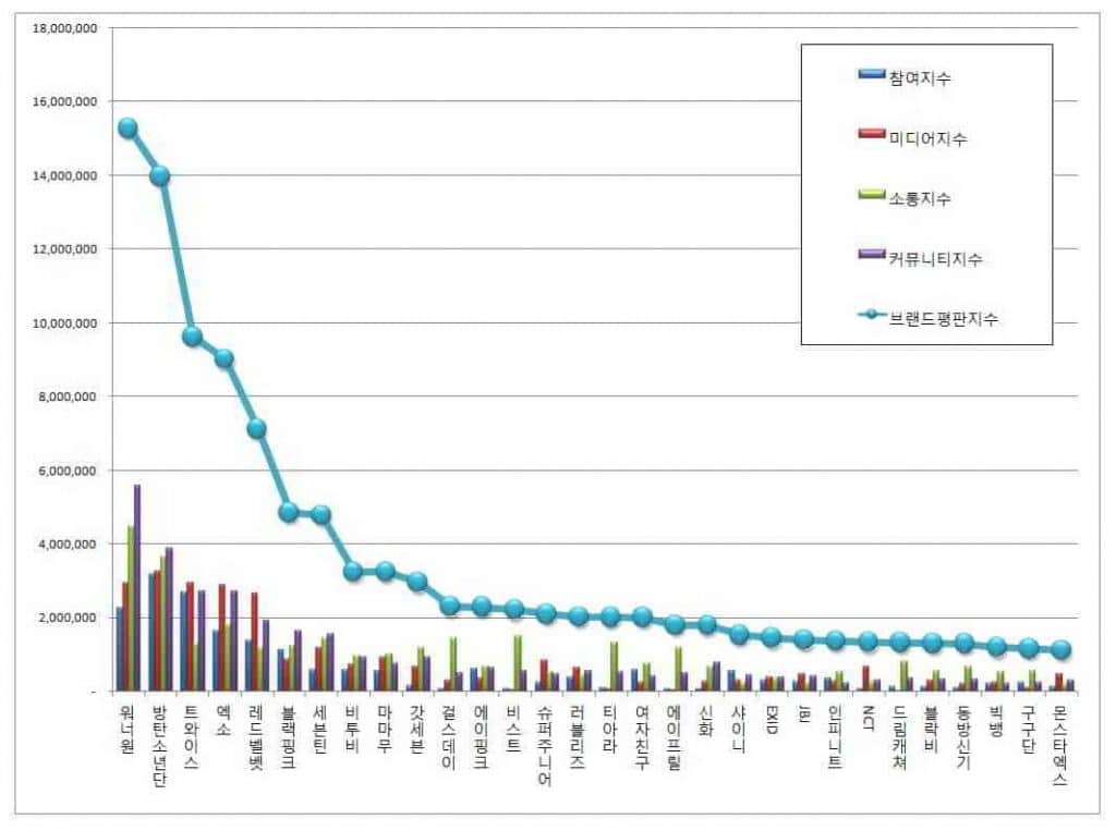 Sonuçlar 30 Kasım ila 30 Aralık tarihleri arasında medya, etkileşim ve toplum dizinlerinin 136,570,134 verinin 100 idol grubu için değerlendirilme sonucu oluşturuldu.