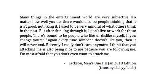 Geçtiğimiz günlerde GOT7′den Jackson Men’s UNO HK ile bir röportaj yaptı.