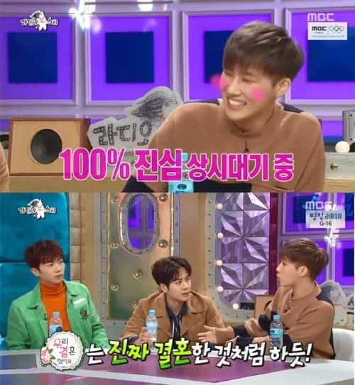 Program sunucuları Wooyoung’un, 2014 yılında “We Got Married” programında eşi olarak katılan Park Se Young ile sergilediği yakınlaşmadan bahsederken, Sunggyu’ya da neden hiç bu programa katılmadığı soruldu.