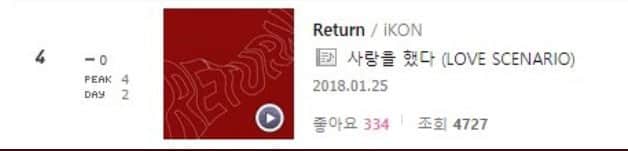 Bugün çıkış parçaları “Love Scenario” (Instiz) iChart‘ın gerçek zamanlı listesinde zirveye oturdu ve 1.liği 13 saattir koruyor. Ayrıca albümlerindeki “Long Time No See” şarkısı da genel iChart listesinde 20.sırada.