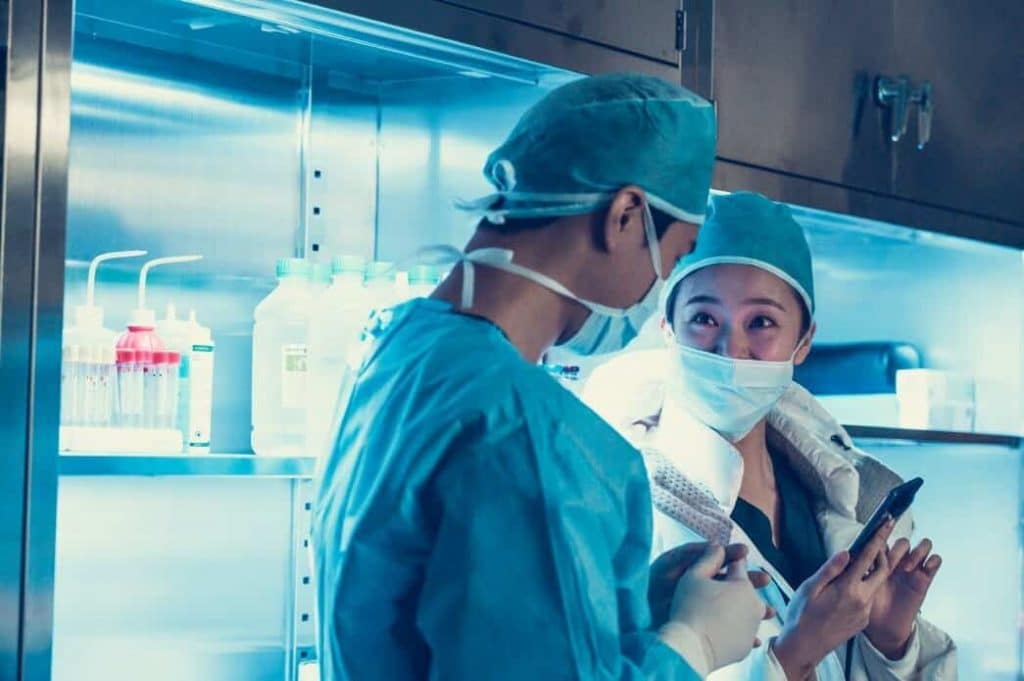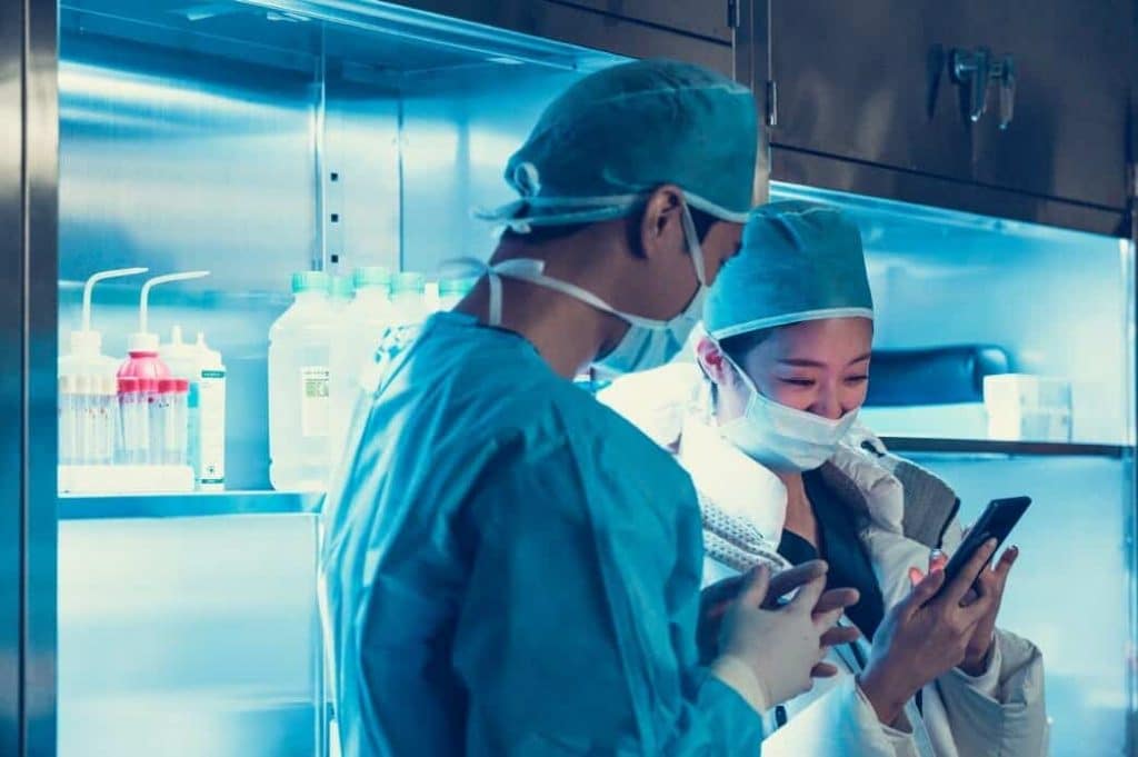 İlk fotoğrafta dizisi Jun So Min‘in Go Kyung Pyo ile birlikte cep telefonlarının ekranına baktığı ve replikler için çalıştıkları görülüyor. Birçok cerrah gibi ikili de maske takmış durumda. Yüzlerinin büyük çoğunluğu kapalı olsada gözleri konuşuyor. Jun So Min oldukça enerjik bakarken Go Kyung Pyo’nun bu enerjiye nasıl tepki vereceğini bilmediği görülüyor.