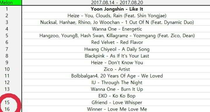 LOVE ME LOVE ME 1 saatte Melon dinleyicileri tarafından en çok dinlenen şarkılar sıralamasında 3.sırada ve en çok dinlenen YG Entertainment şarkılarında da 1 sırada oluyor.