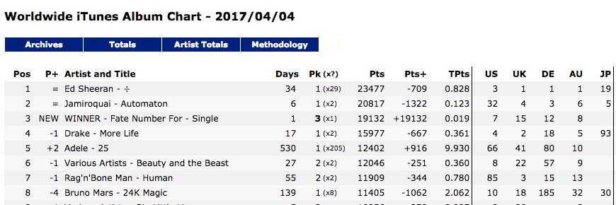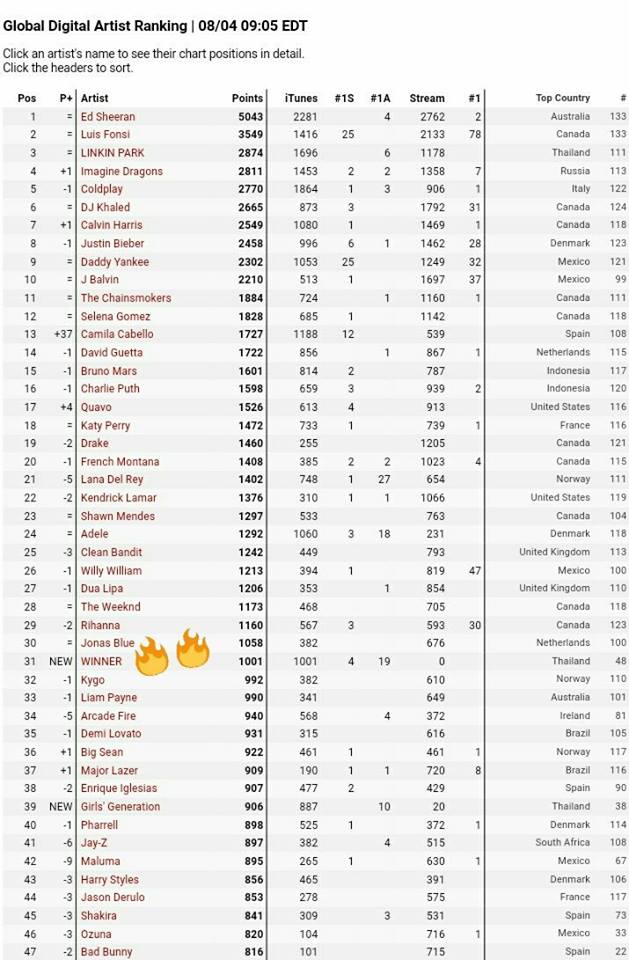 WINNER Global Dijital Artist Sıralamasında 31. Sıraya yerleşti.
