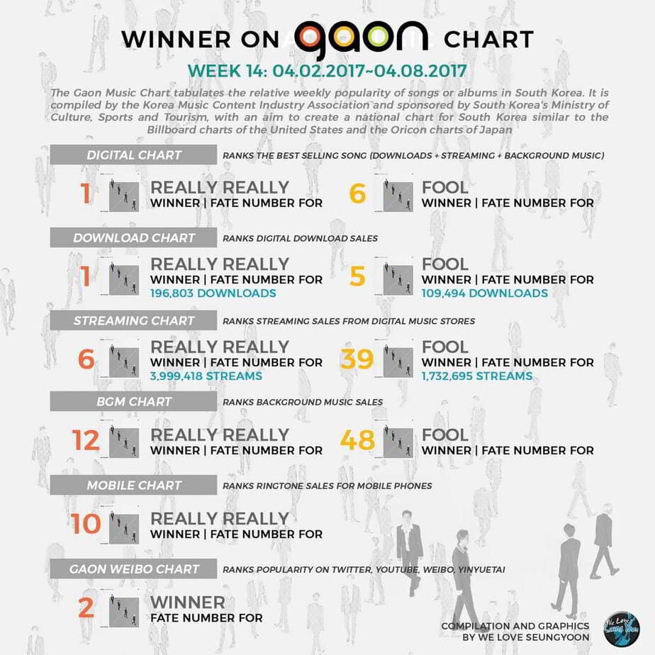 WINNER ilk geri dönüş sahnesini MBC’nin Show’unda gerçekleştirdi. 8 Nisan’da Music Core’da ilk kez ‘Fate Number For’ için sahne aldılar. Ertesi gün Inkigayo’da canlı performans sergilediler. “Fate Number For” adlı albümün yayınlanmasından sonra grup, Kore’deki 7 büyük müzik listesinde 1. sırada yer aldı. Albüm ayrıca Worldwide iTunes Albüm Şeması’nda #3’te yer aldı. ve 24 ülkedeki iTunes Grafiğinde #1 numaraya oturarak iTunes’da en çok ülkede 1 numarada olan Koreli grup oldu.