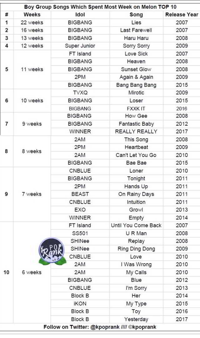 Bu sene Melon’da ilk 10’da -9 hafta ile- EN UZUN KALAN erkek grubu WINNER,