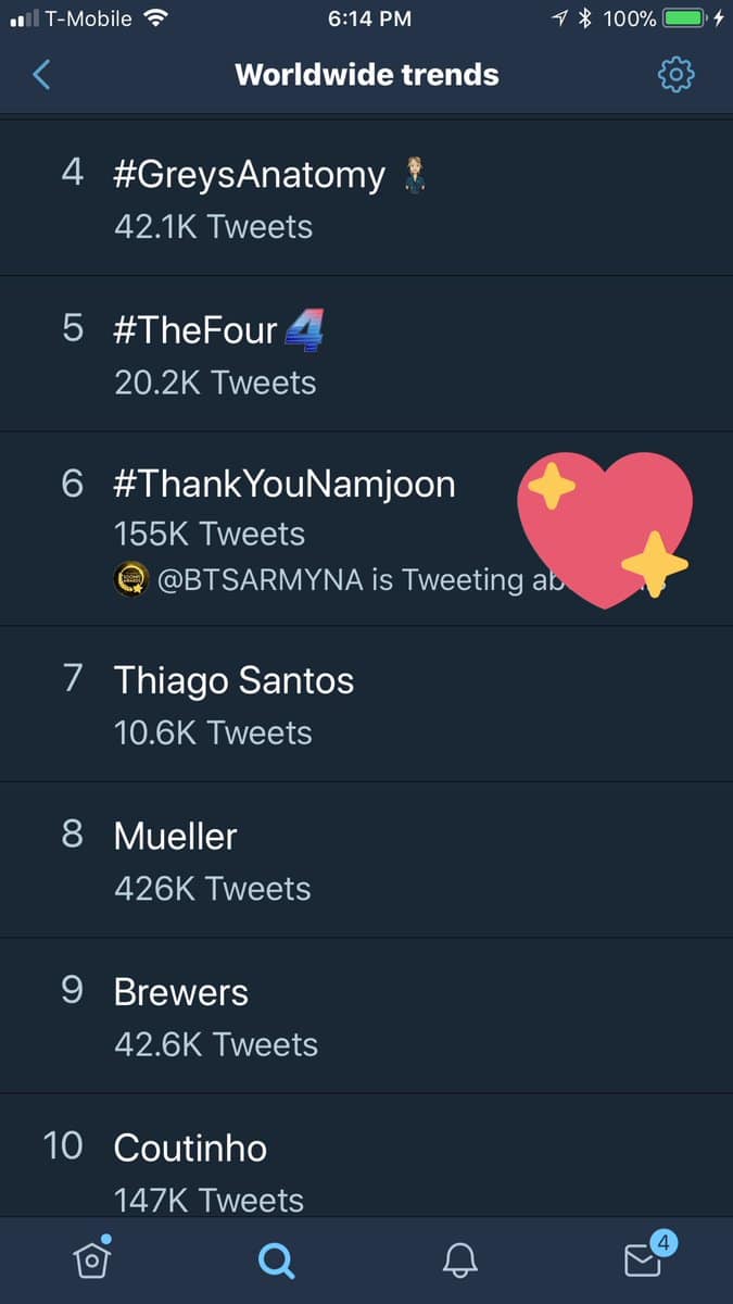 Türkiye saatine göre dün sabah #ThankYouNamjoon dünya gündemindeydi. Akşam ise #ThankYouSeokjin tagı dünya gündemine düştü.