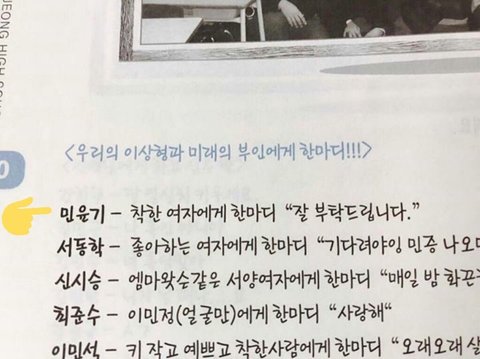 Ah öncelikle bu paylaşımı yapmamın sebebi Twitter’da gezinirken Suga’nın okul yıllarında yazdığı bir şeyi görmem ve yanaklarımın kızarması T.T ve sizinle paylaşmak istedim.