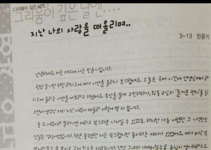 2. [+131, -1] Nazik bir kıza “Tanıştığımıza memnun oldum.” yazısını görmüştüm ama alttaki resmi hiç görmemiştim.. T.T Nasıl 2. sınıf öğrencisi aşkın nasıl hissettirdiği hakkında bu kadar ciddi bir yazı yazabilir, bu kadar güzel yazıldığını görmek şok edici ve ilgi çekici… Yoongi dışarıdan fiyakalı görünüyor ama içeriden bakarsan en yumuşak insan ve derin bir kalbe sahip.. Ah Yoongi’nin tanışacağı kızı çok kıskanıyorum ㅠㅠㅠㅠ Ben de beni hakikaten seven, Yoongi gibi birisiyle karşılaşmak istiyorum ㅠㅠㅠㅠ Derin bir kalbe sahip erkek en iyisidir….