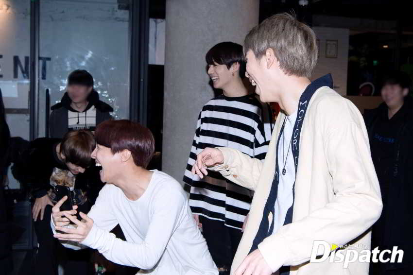 Kardeşler (RM, J-Hope, V, Jimin- Jungkook) abileriyle hep böyle ilgilenirler. O yüzden Suga ve Jin dans ederken onlara tezahürat yapmakla meşgulüz.