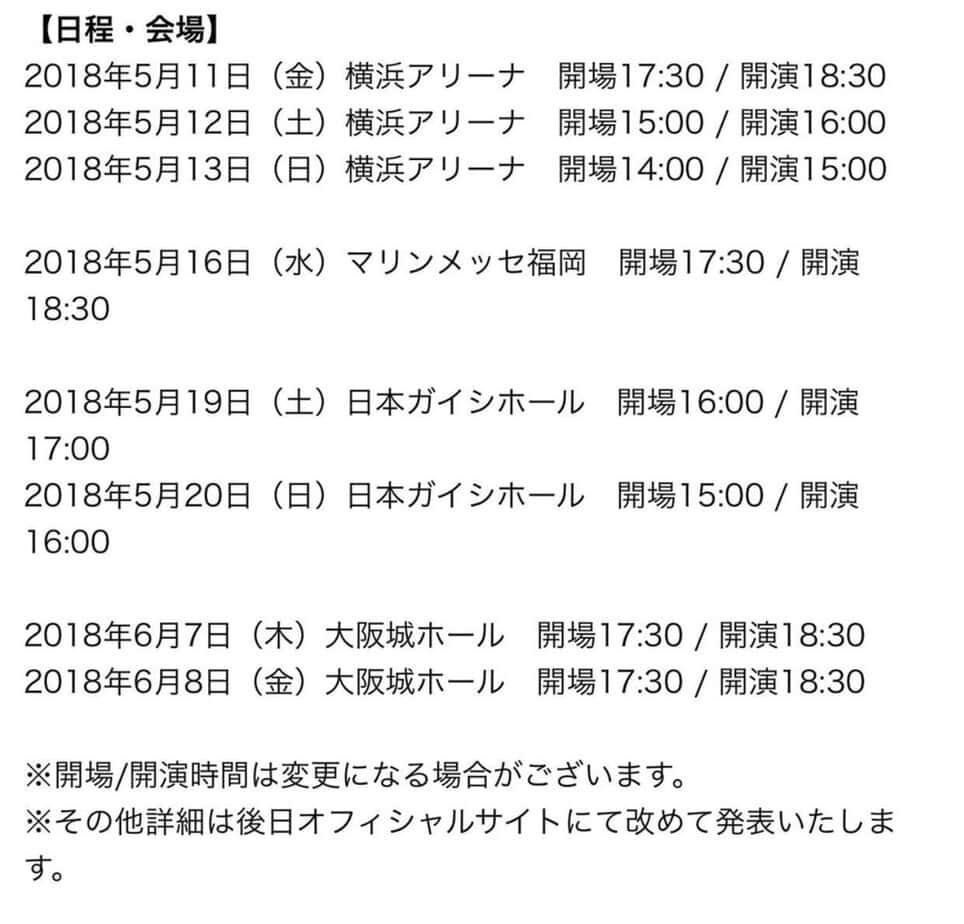 29 Ocak’ta PIKOTARO‘nun ile Line canlı yayına katılan EXO-CBX, bu arada hayranları için müjdeli bir haber verdiler. 11 Mayıs’ta Yokohama Arena‘da başlayacak konser turu 8 Haziran’da Osaka-jō Hall‘de son bulacak. Toplamda 8 konser verecek olan grup binlerce hayranıyla buluşacak.
