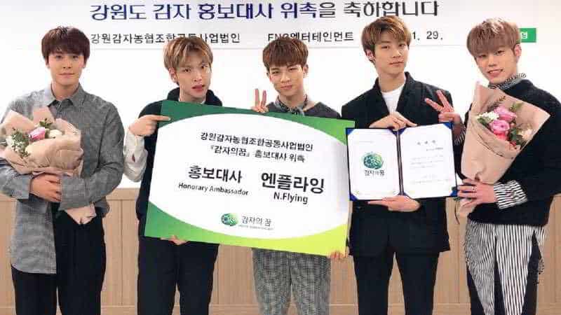 Grup, “Hayaller gerçek oldu. Gangwon Vilayeti’nin patatesleri için fahri elçi olan süper band N.Flying, patatesleri tanıtmak için sıkı çalışarak ellerinden gelenin en iyisini yapacak! Gangwon Vilayeti’nin patatesleri en iyisi!” sözleriyle birlikte atama töreninden fotoğraflarını yükledi.