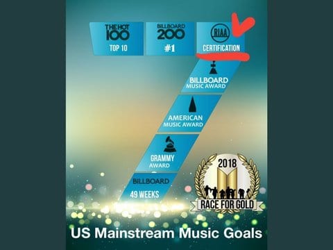 Hot 100 Top 10 -> Billboard 200 zirvesi -> RIAA sertifikası -> BBMA -> AMAs -> Grammy Awards -> Billboard’da 49 hafta