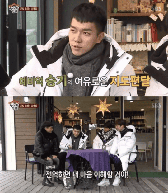Şovda çoğu zaman komik olarak referans gösterdiği gibi, Lee Seung Gi, zorunlu hizmeti tamamlamasından sadece birkaç ay sonra, askeri konuyu düşünmekten ve askeri hakkında konuşmakta hala zorlanıyor. Telefon görüşmesi sırasında Taeyang kendi yaklaşmakta olan hizmetinden bahsetti ve iç çekti.