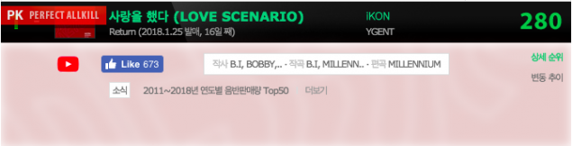 Yaklaşık 1 hafta önce, iKON ‘Love Scenario’ ile gerçek zamanlı listelerde all-kill yapmıştı. Ardından, üyeler son parçaları ile en sonunda perfect all-kill başarmıştı.