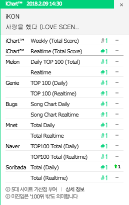 Buna rağmen; iKON şarkının yayınlanmasının 16.gününde her bir müzik listesinde ve Instiz’in gerçek zamanlı iChart ve haftalık iChart’ında da zirveye çıkarak tekrar perfect all-kill (PAK) başardı!