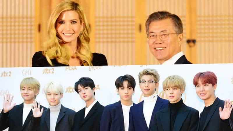 23 Şubat’ta Ivanka Trump, Mavi Saray’da akşam yemeğine katıldı ve Başkan Moon Jae In’e çocuklarının son zamanlarda K-Pop hayranı olduğunu söyledi.
