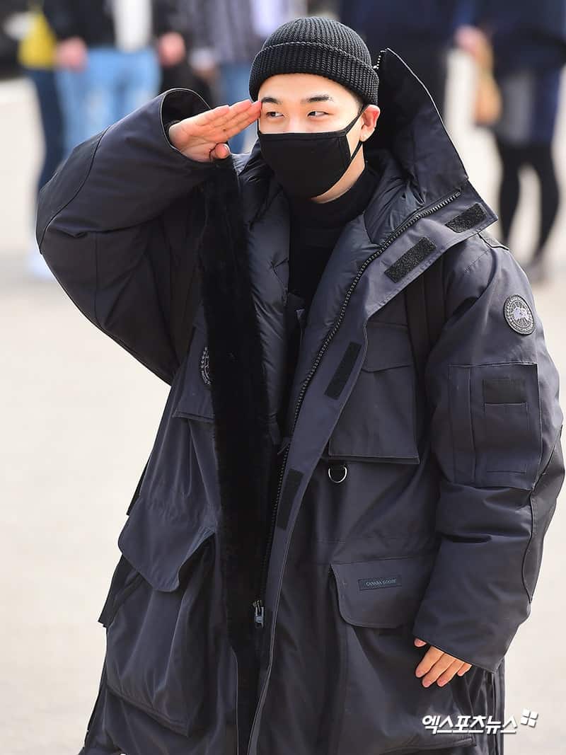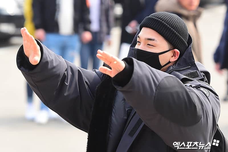 Taeyang daha sonra basın önünde durdu ve başla selamlama ile “Sağlıklı geri döneceğim” dedi.