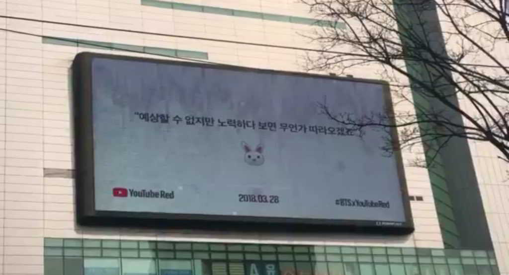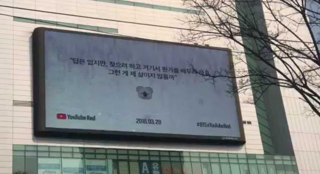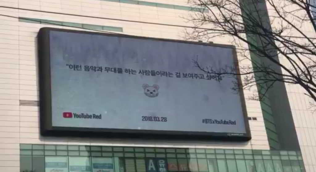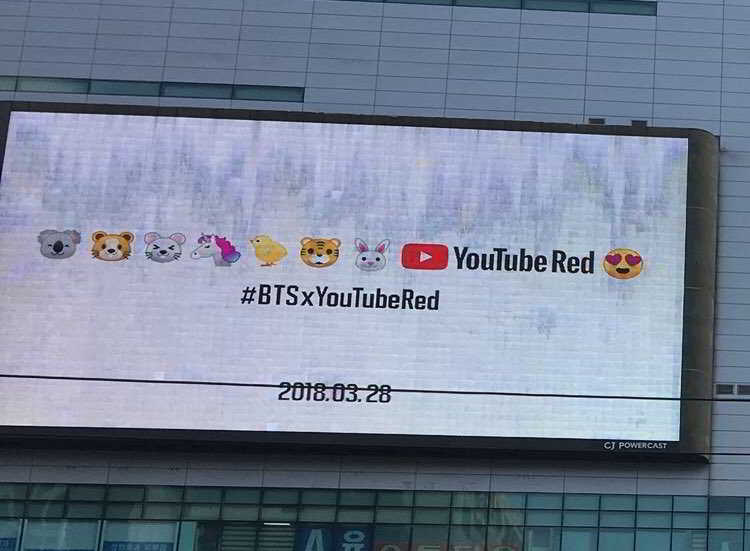 Aşağıda görebileceğiniz ilanlarda BTS üyelerini temsil eden emojiler ve YouTube Red’in ismini görüyoruz. Ayrıca ilanın hemen alt kısmında “#BTSxYouTubeRed” ve “28.03.2018” tarihi yer alıyor.