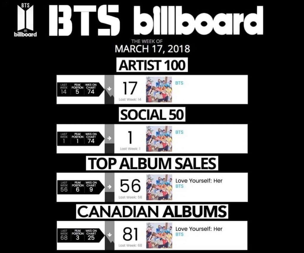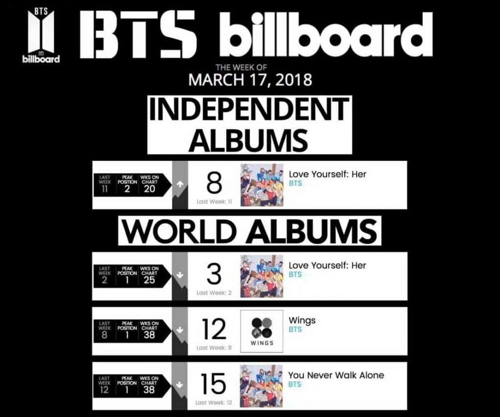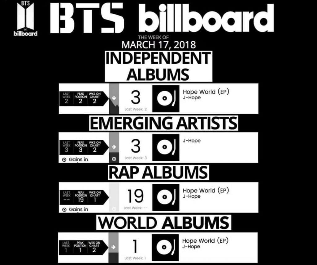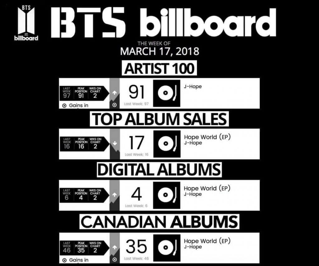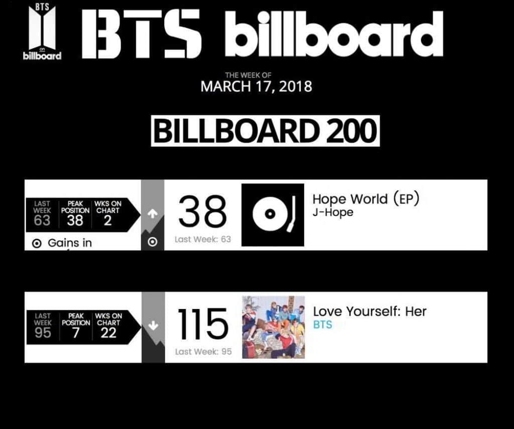 Yazının bundan sonrası Billboard’ın 17 Mart 2018 haftası listesinde BTS ve J-Hope’un liste durumlarını içeriyor. İyi okumalar!