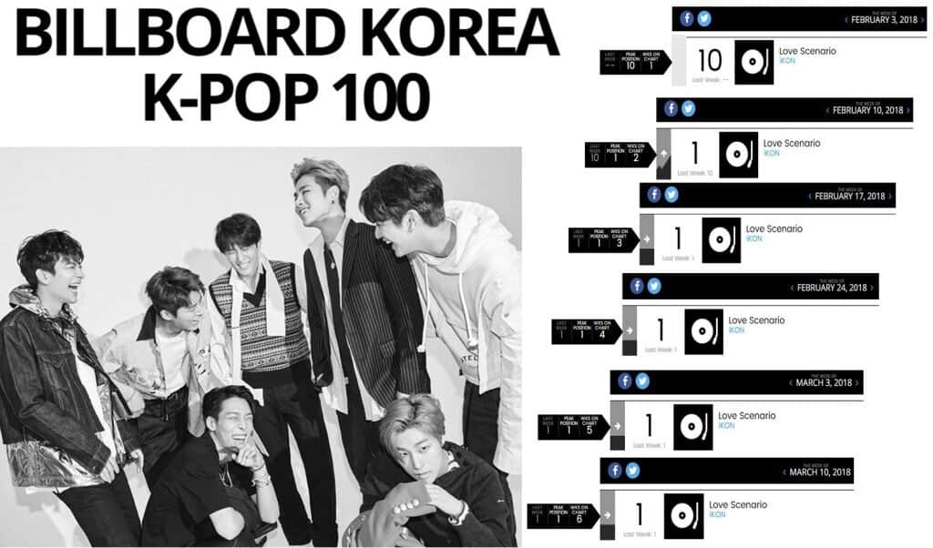 iKON 25 Ocak’ta yayımladığı 2. tam albümü ‘Return’ün başlık parçası ‘Love Scenario’ ile Billboard’un K-Pop listesinde de hakimiyetini sürdürüyor.