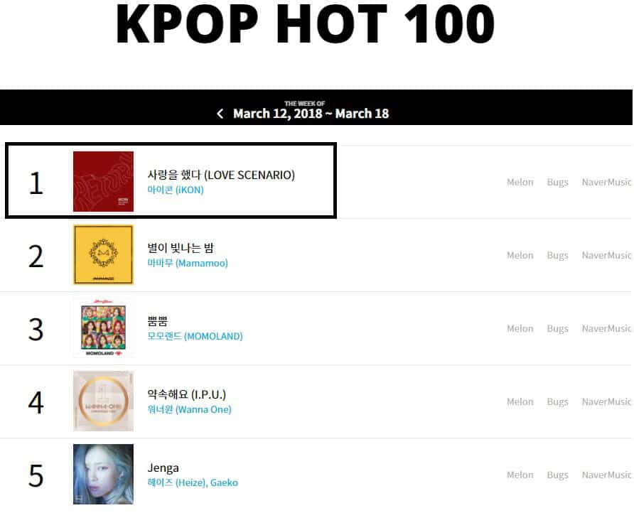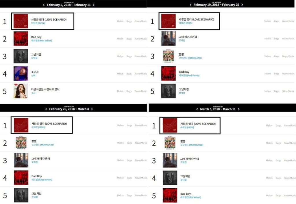 iKON 25 Ocak’ta yayımladığı 2. tam albümü ‘Return’ün başlık parçası ‘Love Scenario’ ile Billboard’un K-Pop listesinde de hakimiyetini sürdürüyor.