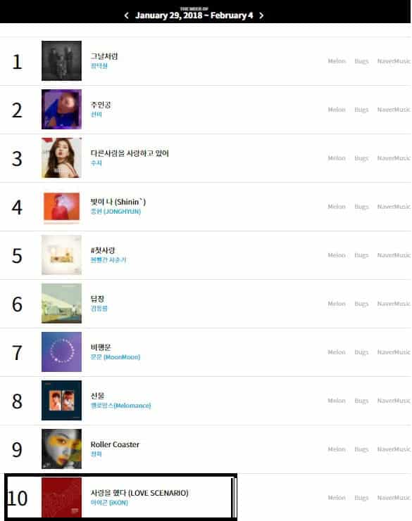 ‘Love Scenario’nun Listedeki İlk Haftası (29 Ocak – 4 Şubat):