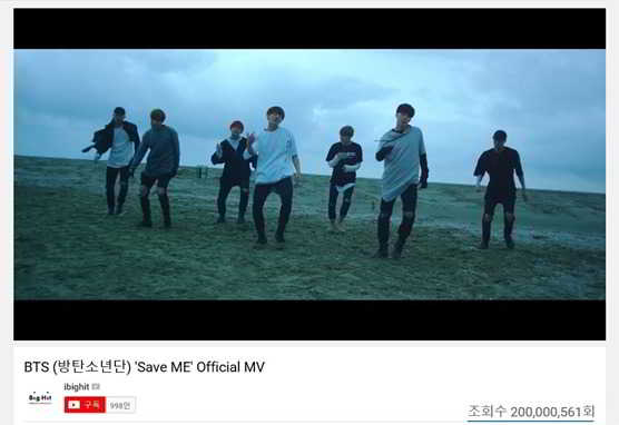 Erkek grubu BTS’in “Save Me” klibi, 200 milyon izlenmeye ulaştı. Mayıs 2016’da yayımlanan “HwaYangYeonHwa: Young Forever” repackage albümünde yer alan “Save Me”nin klibi, 17 Mart’ta Kore saatine göre sabah 8:46’da 200 milyon izlenmeye ulaştı.