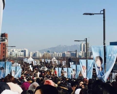 BT21 için Kore’de oluşan kuyruk (Kuyrukta 1500 kişi vardı ama yalnızca 600 kişiye bilet verilmişti.)
