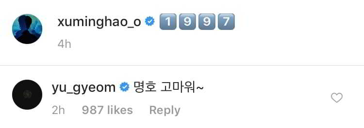 Yugyeom’da “Minghao,teşekkürler~” şeklinde yorum yaparak verdiği destek için teşekkür etti