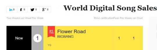 20 Mart’ta Billboard, 24 Mart’ta sona erecek bir hafta için listelerini güncelledi. BIGBANG’ın “Flower Road”, Dünya Dijital Şarkı Satışları tablosunda ilk sırada yer alarak bir kez daha popülerliğini kanıtladı.