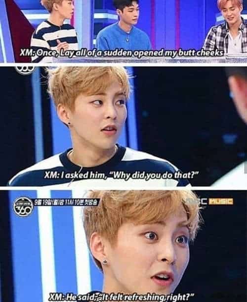 Kötü espri yapma yeteneğine sahip Minseok. Grupta bu özelliği birbirlerinin en iyi arkadaşı olduğunu söylediği Suho ile paylaşıyor. EXO’nun iki büyük üyesinin, modası geçmiş esprileri yapmada üstün yeteneğini kimse geçemez. Bu esprilerden sonra birbirlerini methetmemeleri kaçınılmaz.
