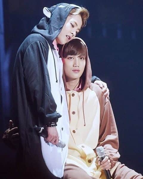 Jongin’in bu hayatta en büyük kazançlarından biri Umin hyungunun sevgisine ve şefkatine sahip olması. Sakatlandığı zamanlardan üyelerle birlikte en büyük destekçisiydi Xiumin. Kai’nin en havalı bulduğu hyungu Xiumin. Sahnede Kai’yi etkileyebilen nadir mükemmelliklerden biri. Xiumin hyungu da Jongin’in en büyük hayranlarından biri. Her daim ona olan hayranlığını dile getirmeden edemez. Kim Bros ekibinin hyung-maknae ikilisi.