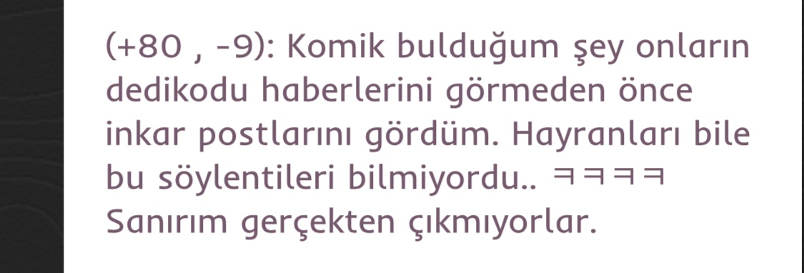 (+80 , -9): Komik bulduğum şey onların dedikodu haberlerini görmeden önce inkar postlarını gördüm. Hayranları bile bu söylentileri bilmiyordu.. ㅋㅋㅋㅋ Sanırım gerçekten çıkmıyorlar.