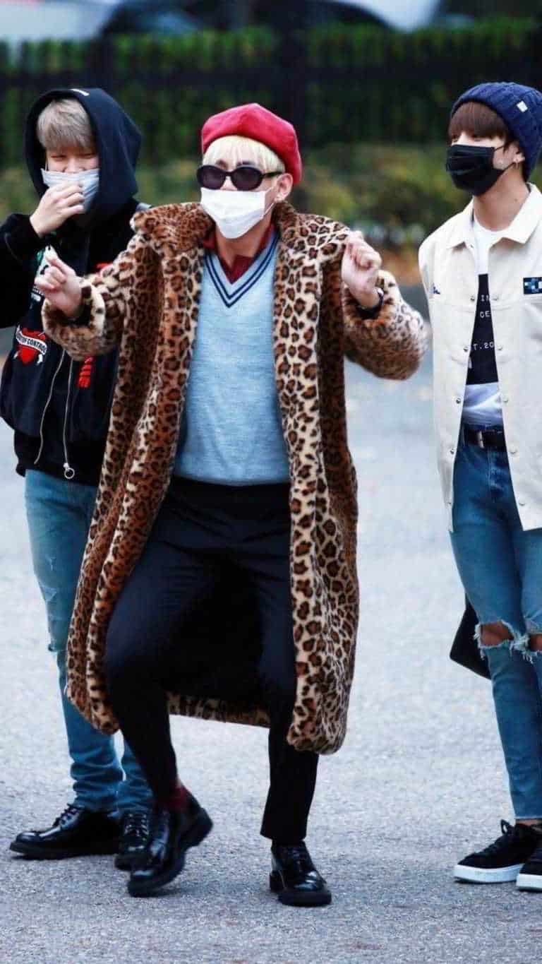 Dış giyimden bahsetmişken, V bu hayvan baskılı ceketiyle dışarıdayken mutlu görünüyor.