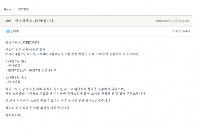 7 Nisanda JYP Entertainment GOT7’ın resmi hayran sayfasında resmi bir açıklama yaptı!