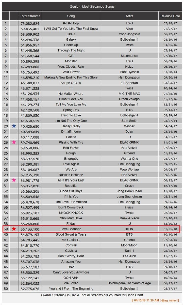 (E/N: Stream rakamları yalnızca Genie müzik listesi için geçerlidir, tüm müzik listeleri veya gaon sonuçları değildir. *Stream: Dinlenme sayısı)