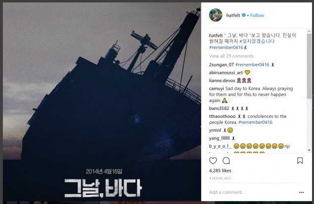 Ünlüler, Sewol feribot kazasında hayatını kaybedenleri saygıyla anıyorlar.