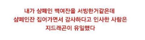 “Sanırım yüz şampanya kadehi servis yaptım, ama G-Dragon tüm bu alan insanların arasında bana teşekkür eden tek kişiydi”