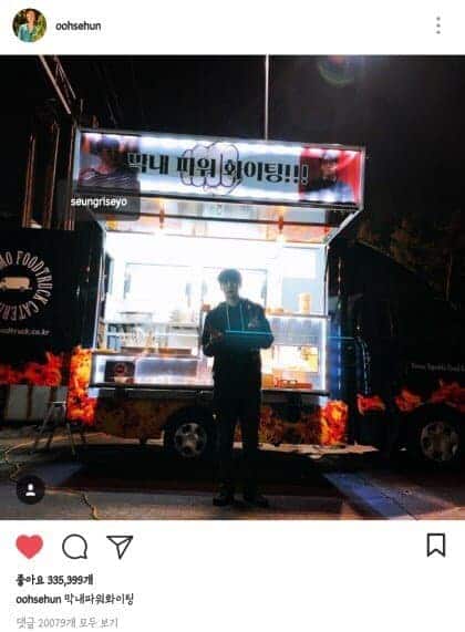 Siz çocuklar hepiniz MAMA sahnesinde Seungri’nin Sehun’un kucağına oturmaya gittiği anı hatırlıyor musunuz? Şimdi ona bir yiyecek kamyonu bile gönderiyorㅋㅋㅋㅋㅋ