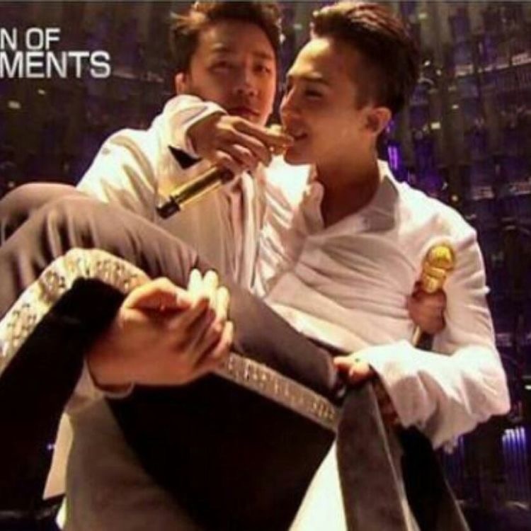 Seungri ve Sehun burada etkileşim kuruyorlar.
