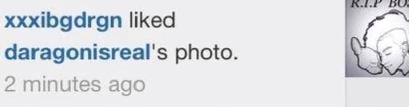 G-Dragon’un, Dara’ya benzeyen ve Instagram’ında Dara ve G-Dragon’un (Daragon) karışık bir resmini çizen bir sanatçının bir fotoğrafını beğendiyi bu gönderiyi buldular.