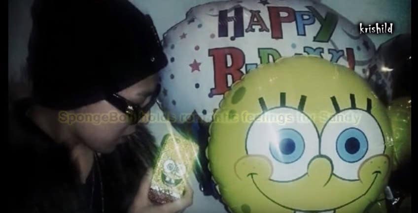 G-Dragon’un Sünger Bob’a olan sevgisini Dara’ya olan gizli sevgisinin sembolü olarak kolayca görebilirsiniz.