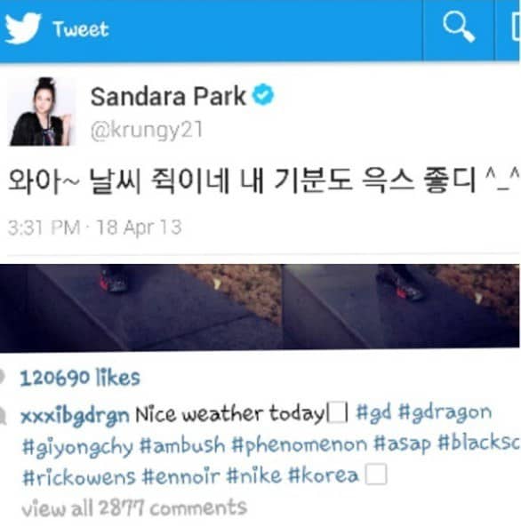 Bazı hayranlar, BIGBANG’den G-Dragon ve Dara’ nın benzer Instagram gönderileri nedeniyle gizlice çıktığını iddia ettikten sonra, diğer hayranlar iki arkadaşın gizli bir ilişkide olduğu gibi görünmesinin ne kadar kolay olduğunu kanıtlamaya karar verdiler.