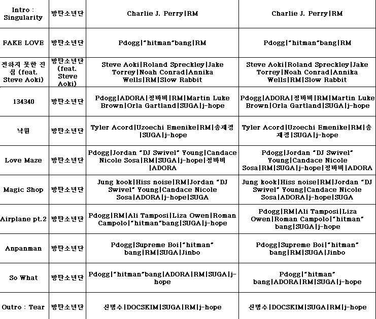 BTS’in üçüncü full albümü LOVE YOURSELF 轉 ‘Tear’ ın yapımına katılanların listesi ortaya çıktı.
